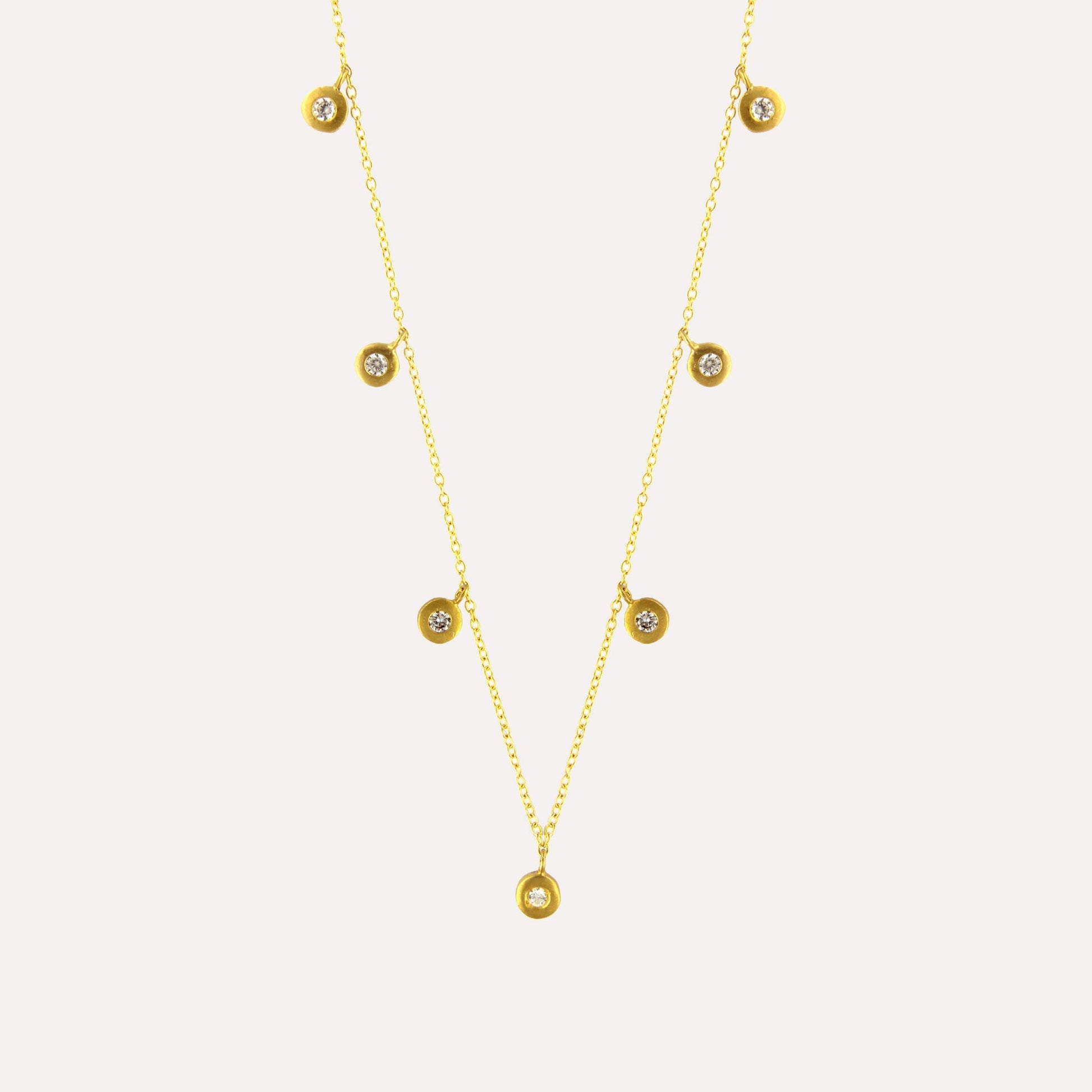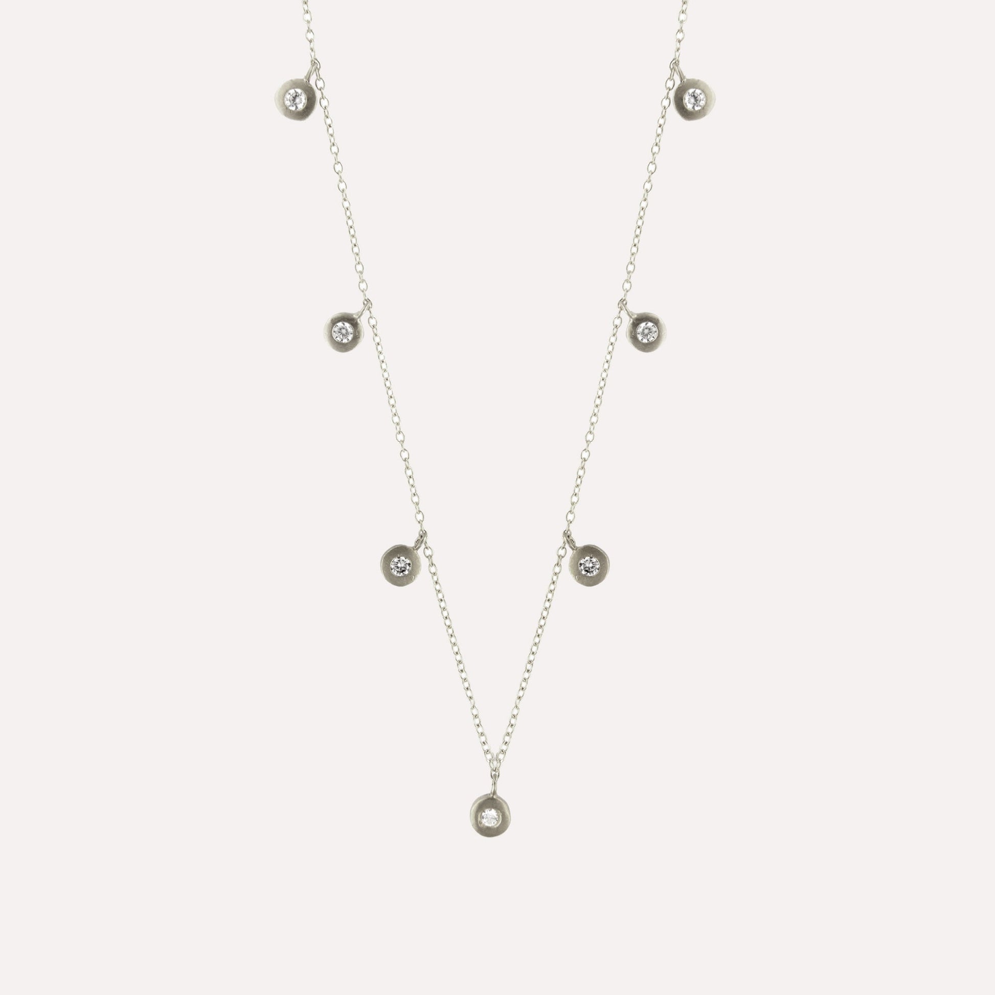 Colar em prata com banho de ouro ou ródio e medalhas pendentes redondas com zircónias cúbicas.