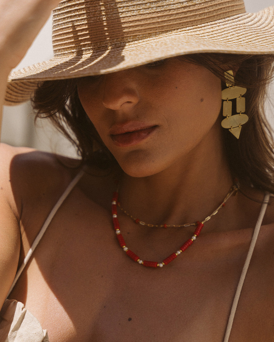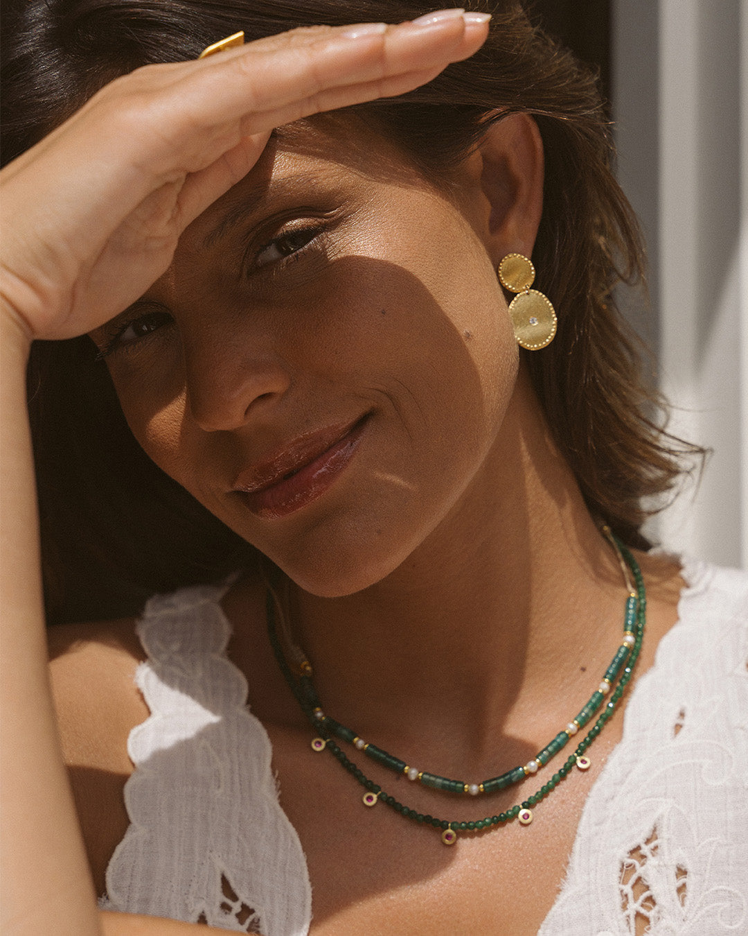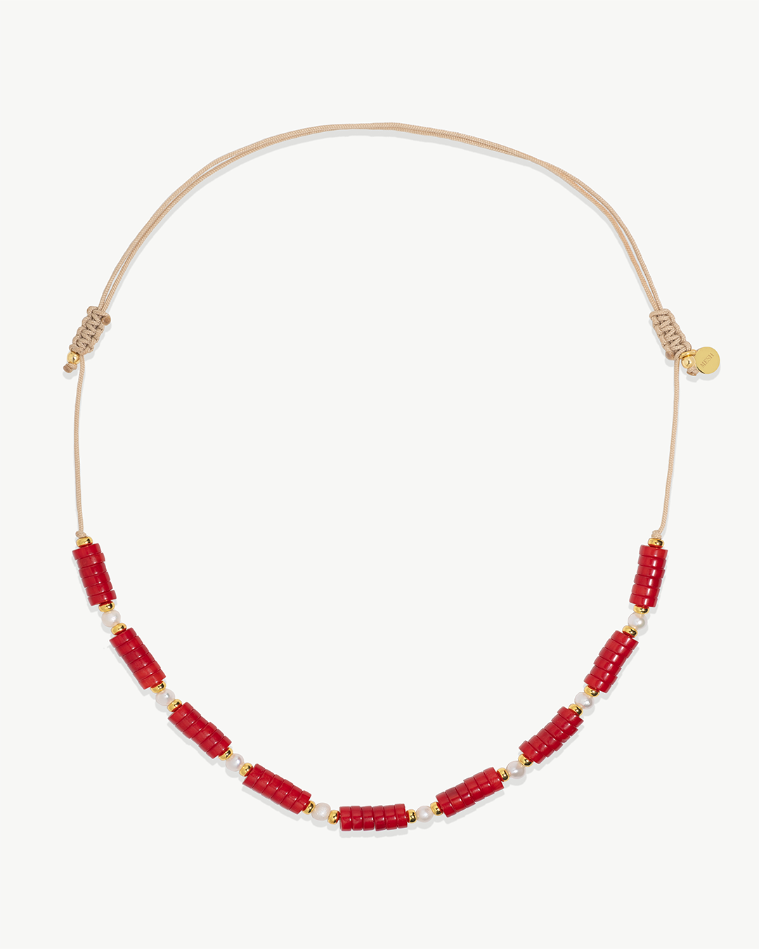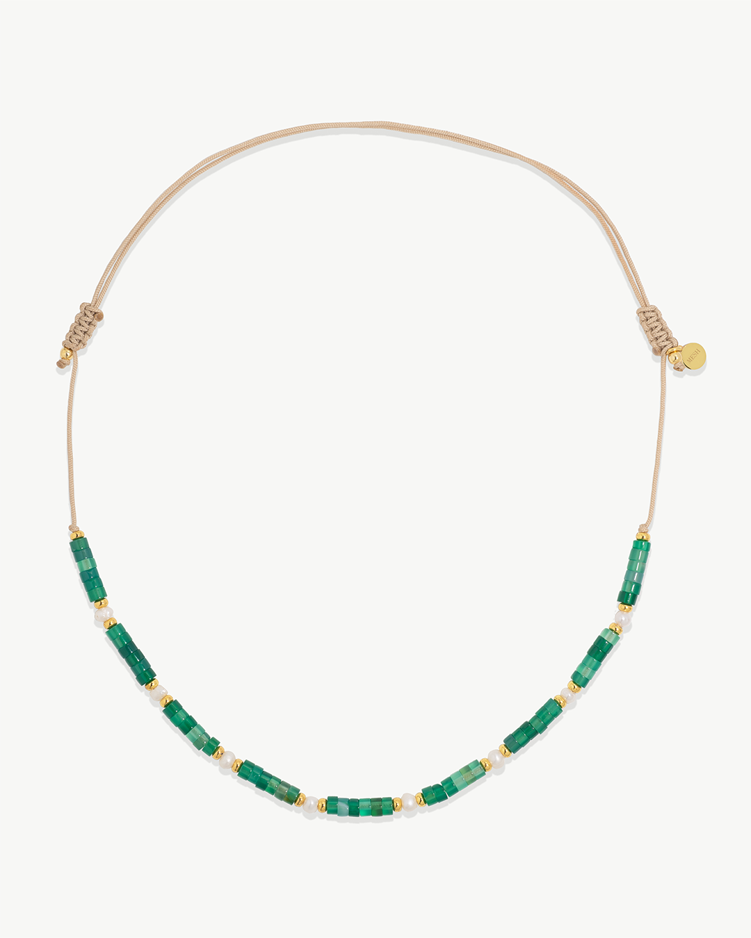 Colar ajustável em corda de algodão e fechos em macramé com pedras naturais , pérolas e prata 925 com banho de ouro.