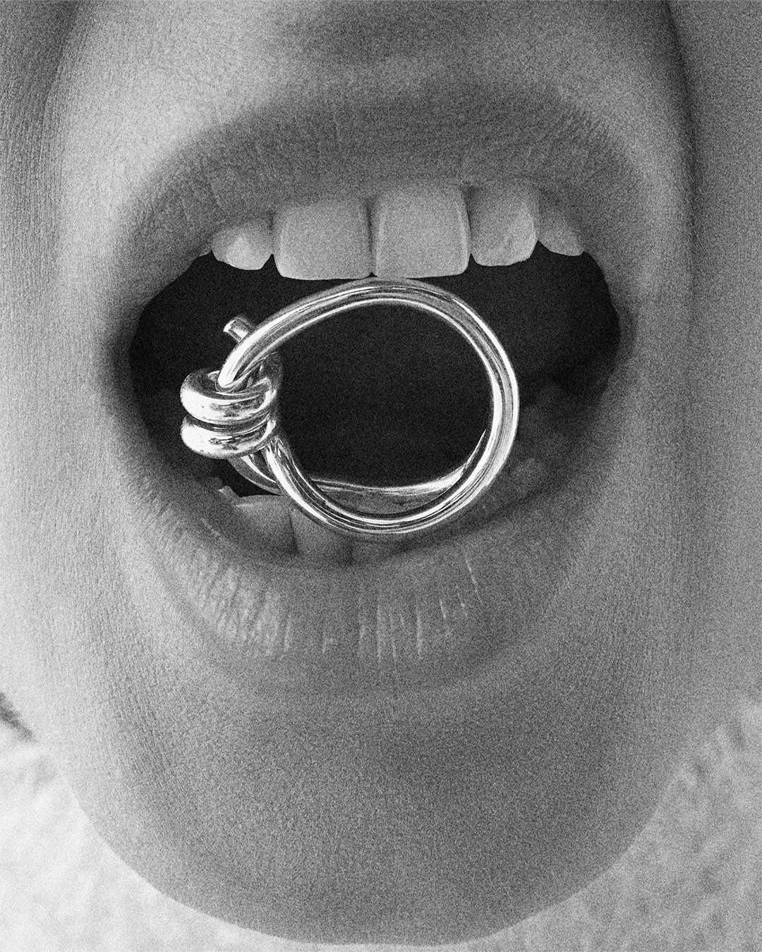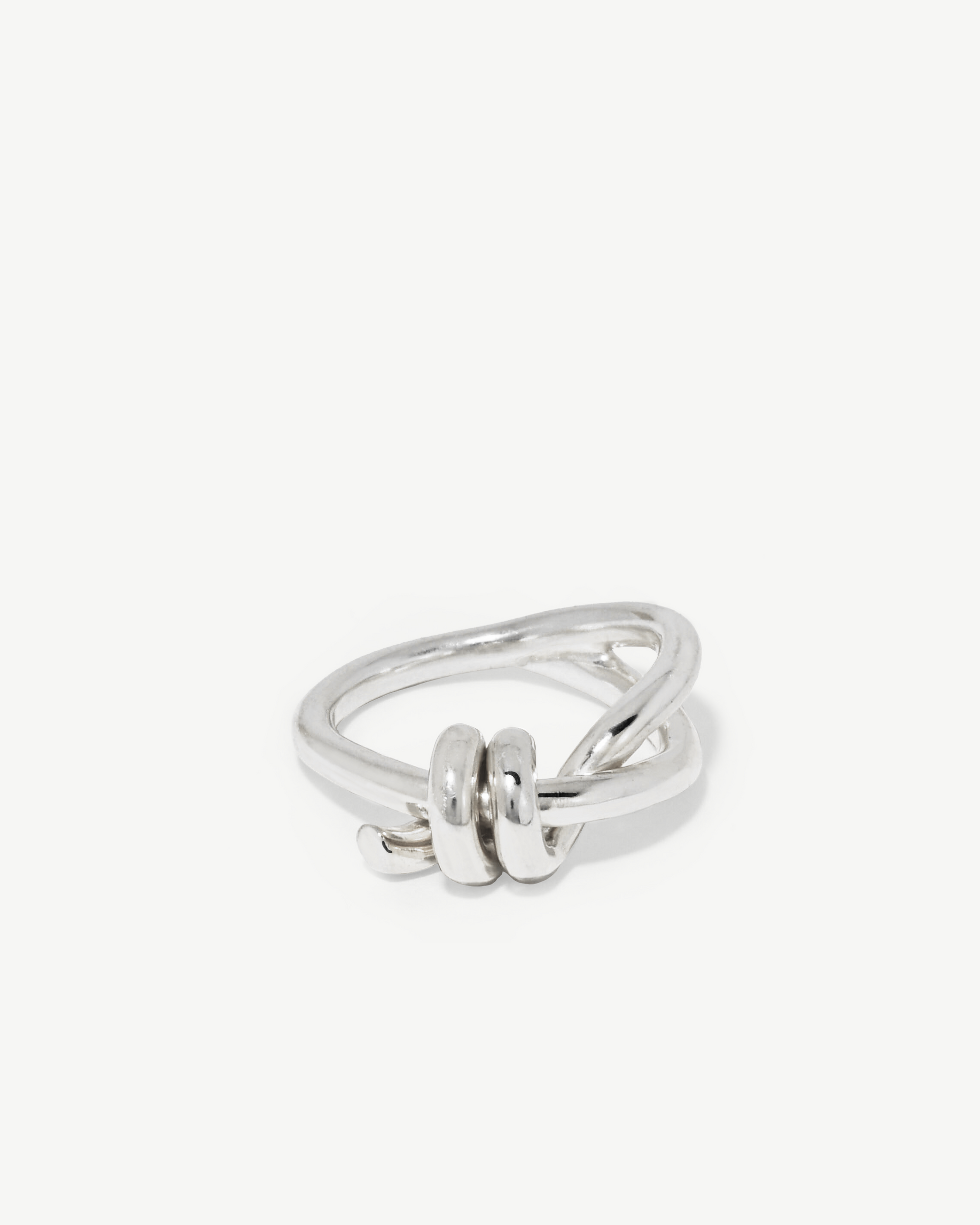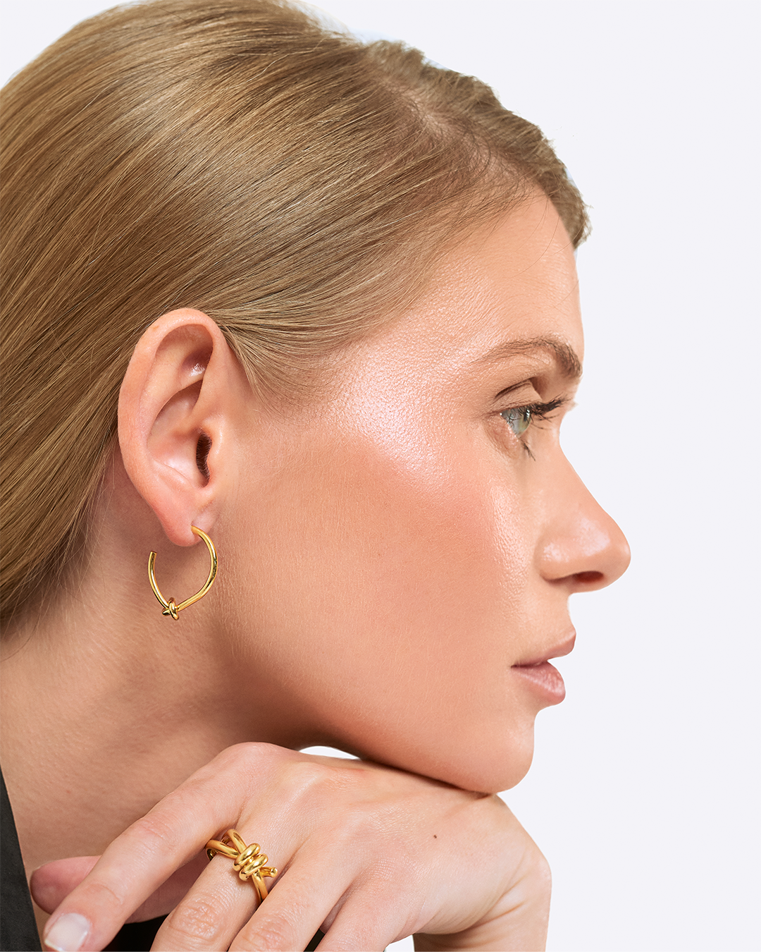 Anel com detalhe de nó feito à mão em prata 925 com banho de ouro 18K.