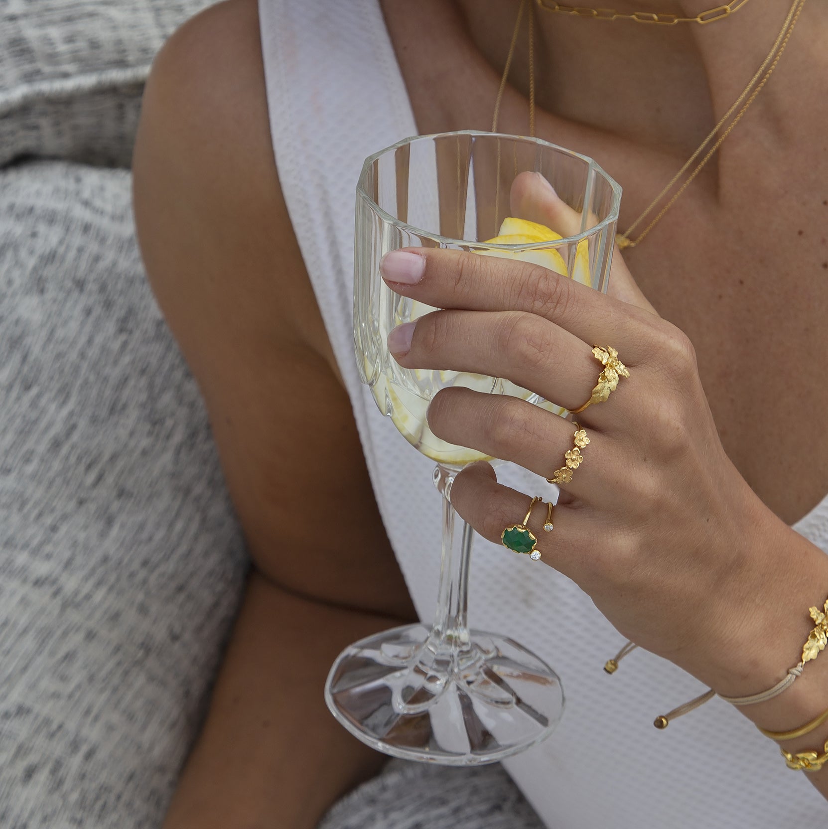 Anel ajustável em prata e banho de ouro ou ródio com flores