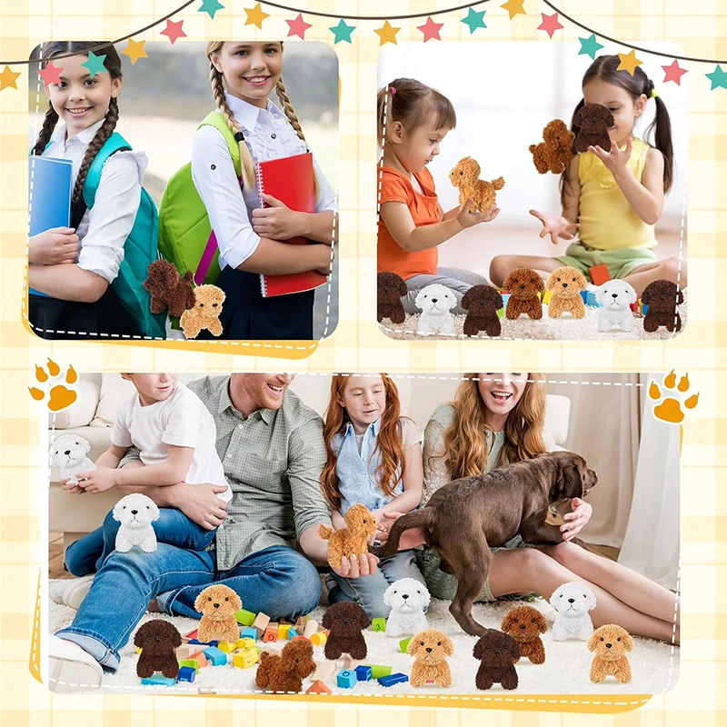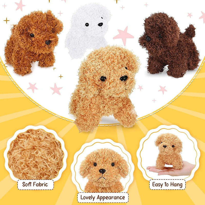 Receba 12 a 48 peças de mini cachorrinhos de pelúcia em 4 cores clássicas, incluindo branco, marrom, marrom escuro e marrom claro.Eles têm um pequeno laço na parte de trás de cada um, você pode prender um chaveiro, para que possam ser presos a mochila, chaves ou telefone, lindos e delicados.