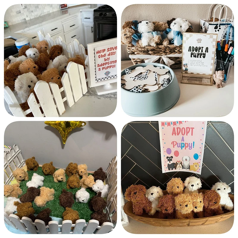 O mini cachorro de pelúcia pode ser aplicado como presentes fofos e quentes para seus familiares e amigos em adotar uma festa de filhotes, festa de aniversário, Halloween, Natal, Ação de Graças, Dia dos Namorados, formatura e assim por diante.